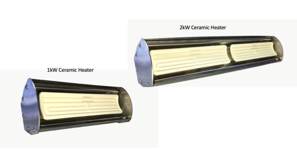 2.0kW heats covered outdoor area of 10m2 - 13m2 and indoor area of 15m2 - 20m2